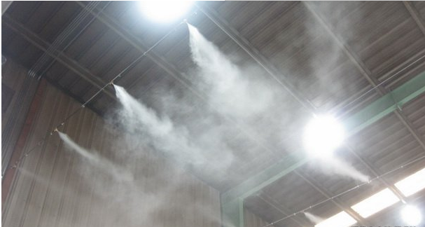 4.噴霧降溫:噴霧降溫的原理也是和水簾一樣的,都是通過水蒸發吸熱達到降溫的,不同的,噴霧降溫是直接在廠房內安裝管線噴嘴,通過主機加壓把水運輸到各支管路,再通過0.1毫米孔徑的高壓霧化噴嘴噴出成霧,霧蒸發降溫。噴霧降溫優點:前期成本低,后期成本也很低(一般1000平米的廠房1.5KW的主機就可以了),降溫幅度大。缺點就是需要通風條件好的廠房,密封廠房不適用。